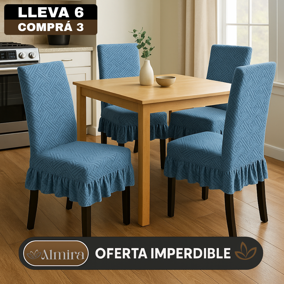[Llevá 6 Pagá 3] Fundas de Lujo Elásticas Noele con Protección Antimanchas y Ajuste Perfecto (¡Transformá tus sillas en segundos!)